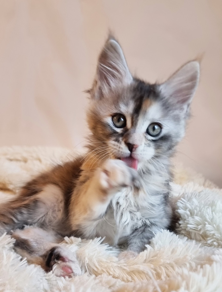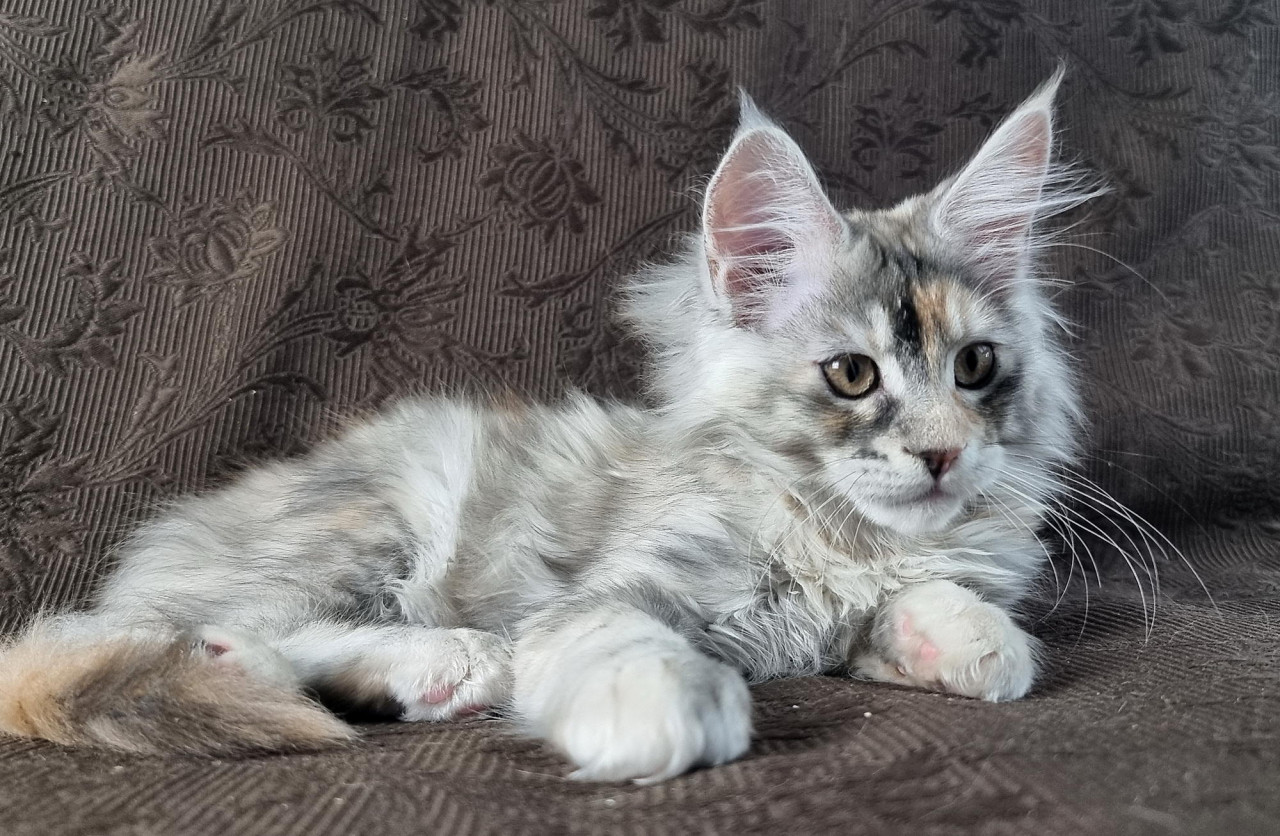 Это светлая, серебристая кошечка с нежной и изящной шерстью. Ее внешность очаровательна и мягка на вид, она словно маленькое серебряное сокровище. Активная и энергичная, она любит играть и исследовать окружающий мир, наполняя дом радостью и весельем. Ее веселый характер и игривость делают её отличным компаньоном для всей семьи. Эта кошечка полна жизни, ласковая и очень дружелюбная.