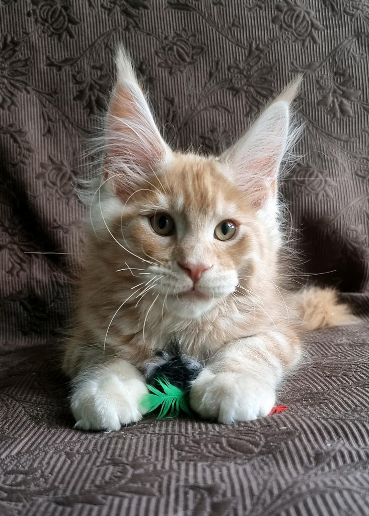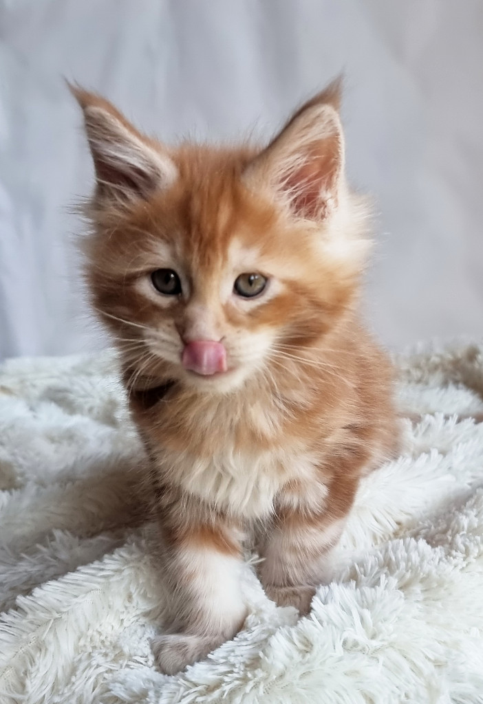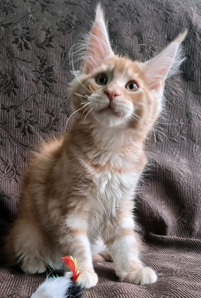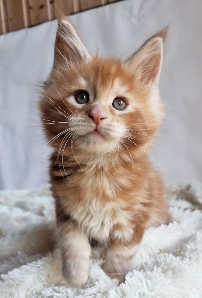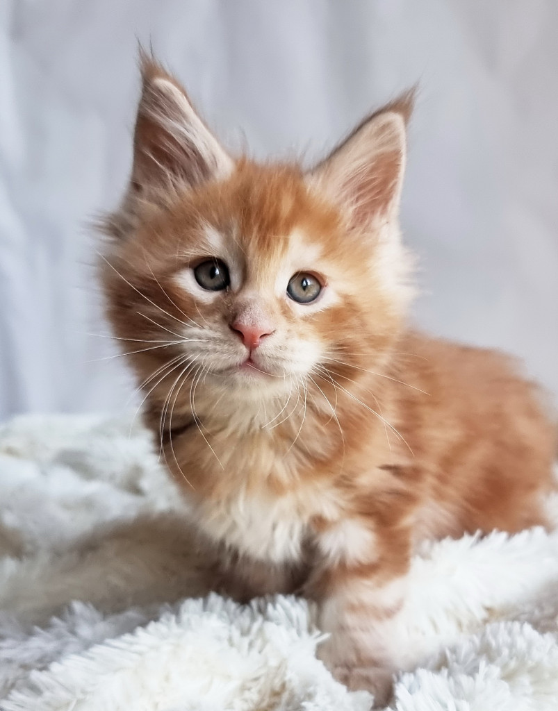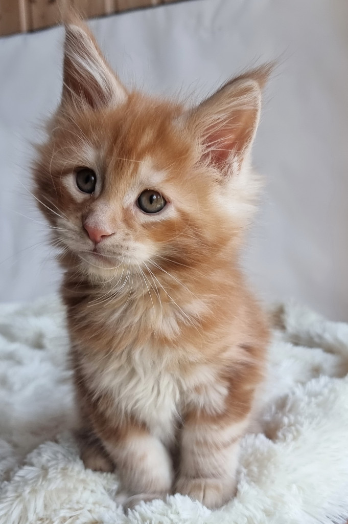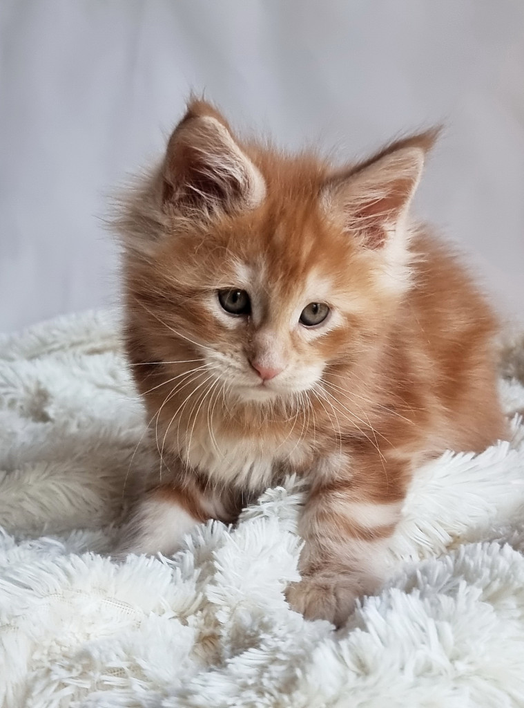 Этот мальчишка рыжего цвета с мягкими серебристыми штрихами, придающие ему особую элегантность. Его лицо выглядит серьёзным и внимательным, глаза — глубокие и выражающие мудрость и спокойствие, создавая впечатление важной и задумчивой натуры.