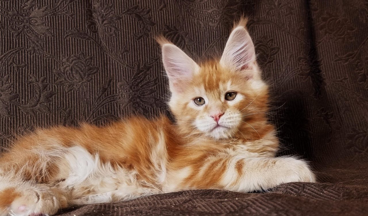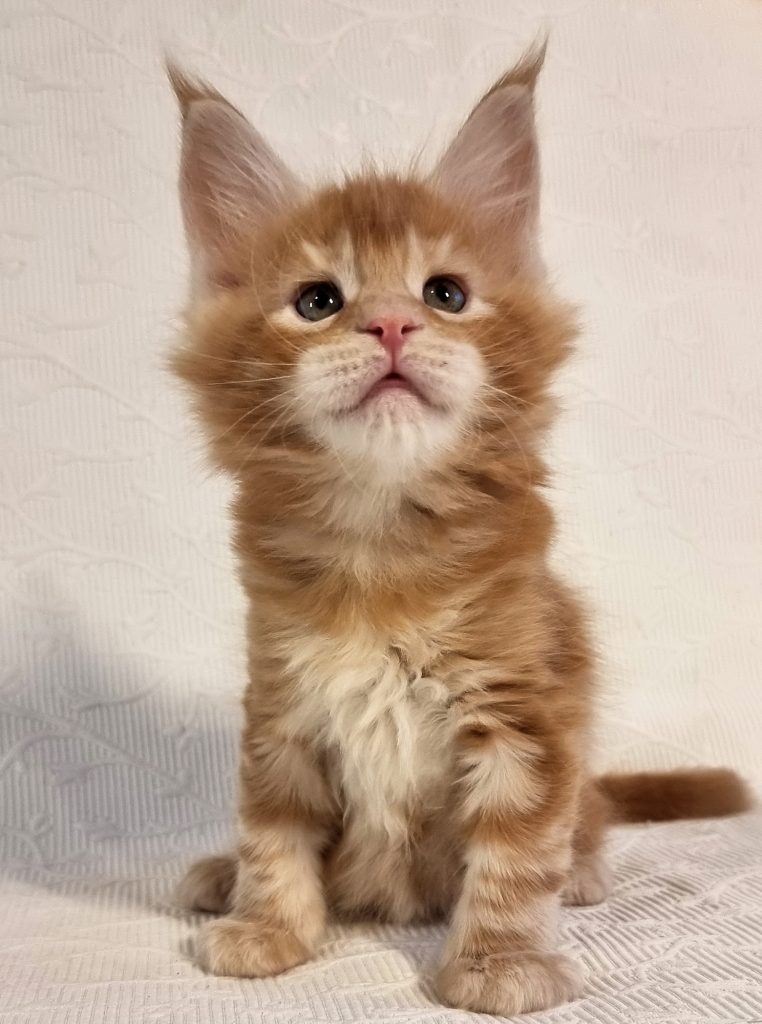 Породный мальчик. Наполненная мордочка, хороший переход, высокий лоб. Кисточки большие и широкие растут. Хвостик длинный, Крупный мальчик.